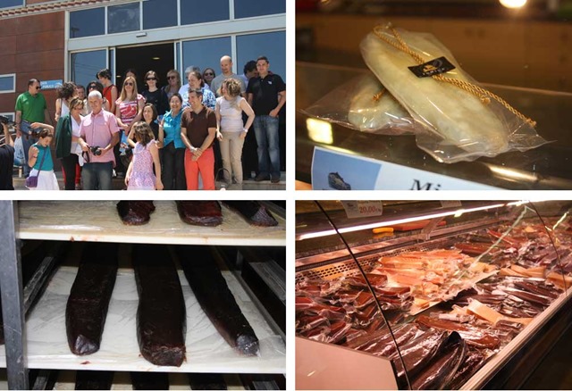 Y para contrarrestar tanto dulce, qué mejor que hacer una parada en la tienda de Ricardo Fuentes e Hijos Salazones, donde ya nos esperaba José María Donate para hablarnos sobre esta empresa cartagenera que ha llegado a ser la empresa líder en el sector en nuestro país. No había más que echar un vistazo a las bellezas expuestas en sus vitrinas para darnos cuenta de la gran calidad de sus productos, desde los más clásicos mojama y huevas, hasta los ahumados, el bacalao, la ventresca en aceite etc…También pudimos visitar la factoría y aunque los sábados no se trabaja, José María nos explicó perfectamente todo el proceso que a pesar de usar los últimos adelantos técnicos, en el fondo sigue la misma técnica que ya se empleaba en estas tierras desde los tiempos de los romanos.